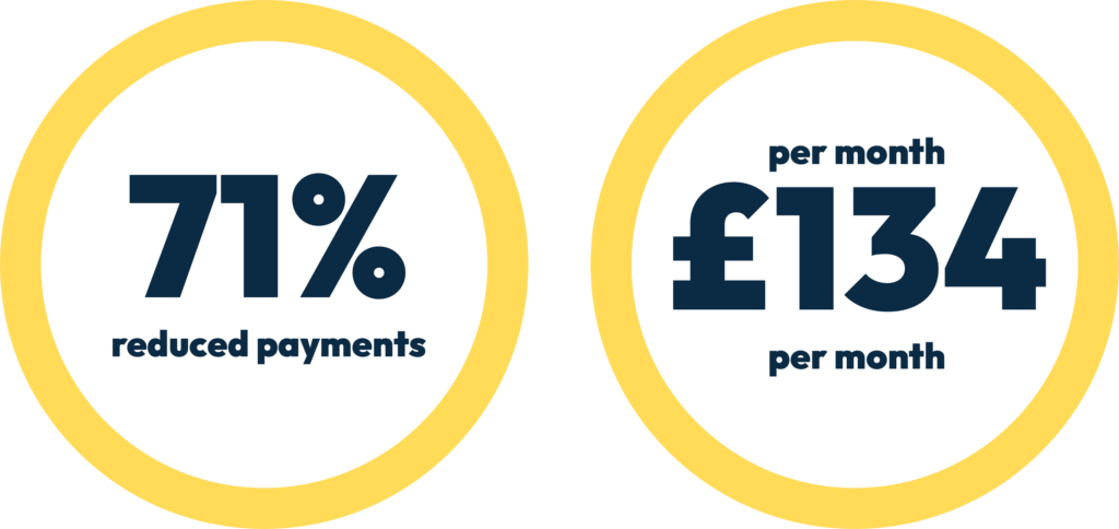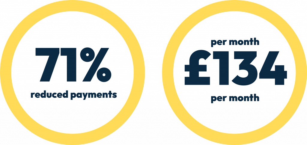 Example case is based on genuine average consumer data from January to September 2023. Monthly payments and write off percentages are based on individual circumstances.